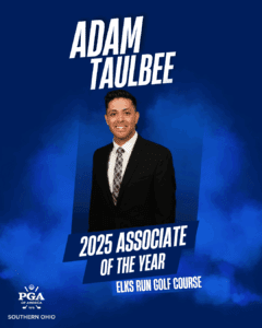 The Southern Ohio PGA is proud to recognize Adam Taulbee, Assistant Golf Professional at Elks Run Golf Club, as the 2025 Associate of the Year. Known for his unwavering dedication, infectious passion for the game, and constant drive for improvement, Adam embodies the values of the PGA of America and the Southern Ohio Section.