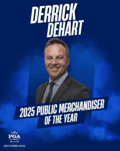 For more than 25 years, merchandising has been a point of pride for Derrick DeHart, PGA. That dedication, paired with his eye for detail and commitment to customer service, earned him the 2025 Southern Ohio PGA Public Merchandiser of the Year Award. DeHart, now at Dayton Country Club, received the honor for his outstanding work at The Golf Club at Stonelick Hills.