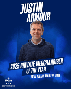 The Southern Ohio PGA is proud to recognize Justin Armour, PGA, Head Golf Professional at New Albany Country Club, as the 2025 Private Merchandiser of the Year. Justin’s leadership in golf shop operations, his commitment to member service, and his innovative approach to merchandising have elevated the standard for private club retail in the region.