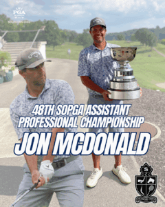 DAYTON, OH – There’s hot and then there’s whatever Jon McDonald is currently doing on the golf course. McDonald kept is blazing month of July going at Dayton Country Club, winning the 48th Southern Ohio PGA Assistant Professional Championship with rounds of 68-67. His 5-under score bested Taylor Suggs by three shots and further showcased the exceptional golf he’s been playing over the last few weeks.